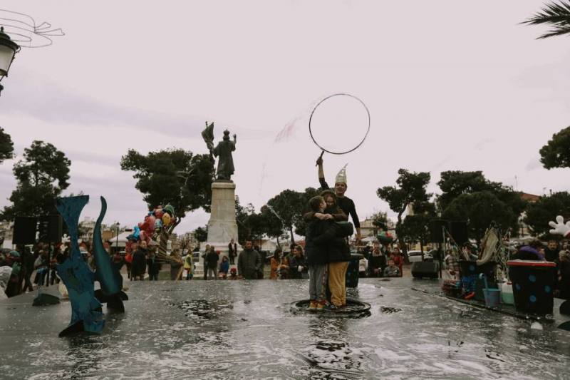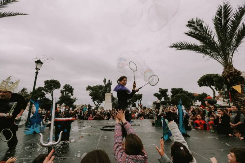 Η Κεντρική Καρναβαλούπολη ολοκληρώθηκε με ιδανικό τρόπο με τη θεαματική παράσταση «Ιστορίες από τον βυθό της θάλασσας» από την καλλιτεχνική – δημιουργική ομάδα La Petite Marguerite που γέμισε έγχρωμες σαπουνόφουσκες την ατμόσφαιρα ταξιδεύοντάς μας σε έναν παραμυθένιο κόσμο. Υπό τους ήχους μιας υπέροχης μουσικής το ντουέτο La Petite Marguerite μάγεψε τους μικρούς ζωντανεύοντας τη φαντασία και το όνειρο. Οι εφήμερες πολύχρωμες σαπουνόφουσκες πλημμύρισαν τους αιθέρες φέρνοντας στην επιφάνεια και «δείχνοντάς» μας ό,τι συμβαίνει στο βυθό της θάλασσας ανάμεσα σε αστερίες, κοράλια, ψαράκια μικρά και ψαράκια μεγάλα. Με «καρναβαλικές» σαπουνόφουσκες στις οποίες υποκλίθηκε ο βροχερός καιρός.