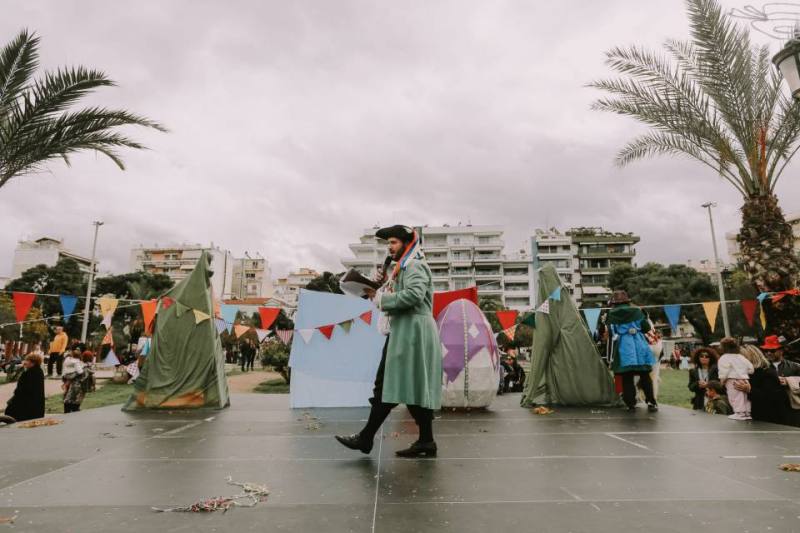 Η διαδραστική παράσταση «Το αυγό της χαράς» από την Ομάδα Παιδαγωγών & Εμψυχωτών «ΟροΠαίδιο», που συνδύασε Θέατρο και Καρναβάλι, εμπνευσμένη από την ξεγνοιασιά, τη χαρά, τη γοητεία και την περιέργεια που χαρακτηρίζουν τόσο τις Απόκριες όσο και την παιδική ηλικία, με ερέθισμα στοιχεία από το ιταλικό παραμύθι “La nascita di Arlecchino” του Roberto Piumini, άφησε πολύ καλές εντυπώσεις. Οι εμψυχώτριες του «ΟροΠαίδιο» εμπλέκοντας ενεργά τα παιδιά «γέμισαν» την πλατεία Απόκριες έχοντας συνοδοιπόρο τον Αρλεκίνο, το παιδί της Αποκριάς!