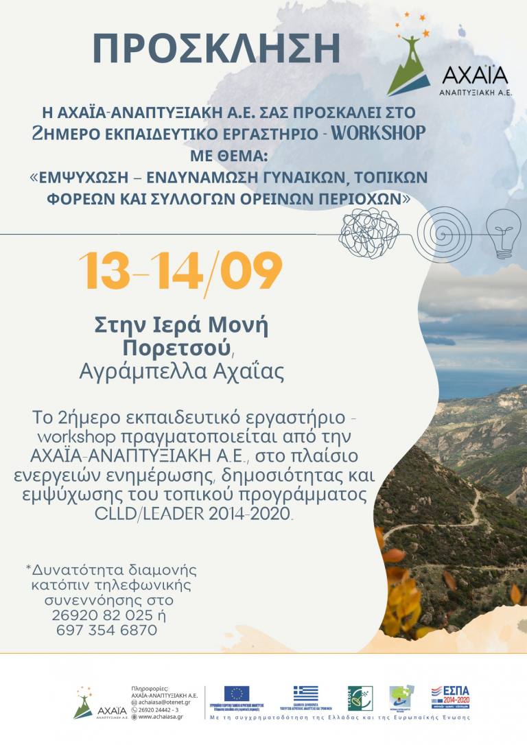 «ΕΜΨΎΧΩΣΗ – ΕΝΔΥΝΑΜΩΣΗ ΓΥΝΑΙΚΩΝ, ΤΟΠΙΚΩΝ ΦΟΡΕΩΝ ΚΑΙ ΣΥΛΛΟΓΩΝ ΟΡΕΙΝΩΝ ΠΕΡΙΟΧΩΝ», στο πλαίσιο ενεργειών ενημέρωσης, δημοσιότητας και εμψύχωσης του τοπικού προγράμματος CLLD/LEADER 2014-2020.