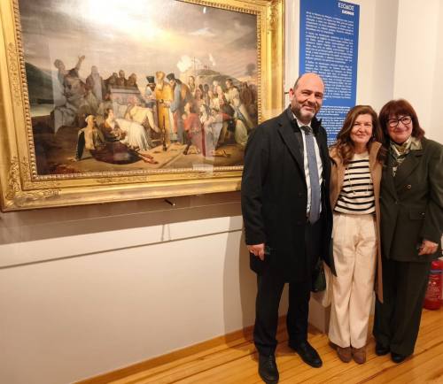Μέσα σε κλίμα εξαιρετικής συγκίνησης  οι επισκέπτες περιηγήθηκαν στον χώρο του Μουσείου του λόρδου Βύρωνα και είχαν την ευκαιρία να ακούσουν αναλυτικές πληροφορίες για τα δύο ιστορικά κειμήλια. Πρόκειται  για την ενυπόγραφη ελαιογραφία του Γάλλου ζωγράφου Louis Joseph Toussaint Rossignon, που απεικονίζει την τελευταία Μετάληψη των υπερασπιστών του Μεσολογγίου, από τον επίσκοπο Ρωγών και Κοζύλης Ιωσήφ,  πριν από την Ηρωική Έξοδο, την Κυριακή των Βαΐων του 1826,  η οποία να σημειωθεί ότι ανήκει σε ιδιωτική συλλογή, αυτό είναι το πρώτο της ταξίδι εκτός Αττικής και είναι πράγματι εξαιρετικά συγκινητικό το γεγονός ότι αυτός ο πίνακας έρχεται να συναντήσει τον ιστορικό τόπο της έμπνευσής του, την Ιερή Πόλη που στάθηκε αφορμή για τη γέννηση αυτού του καλλιτεχνικού δημιουργήματος.