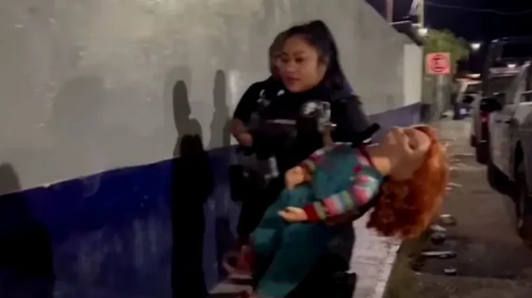 «Χειροπέδες» σε μια κούκλα του Τσάκι έβαλαν αστυνομικοί στο Μεξικό καθώς ο ιδιοκτήτης της, ο οποίος επίσης συνελήφθη, την χρησιμοποιούσε για να τρομοκρατεί ανυποψίαστους πολίτες.