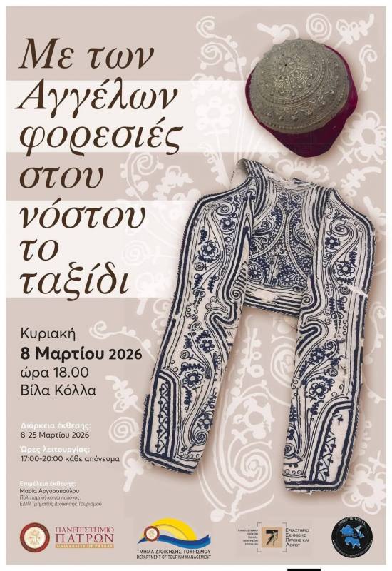 Στη Βίλα Κόλλα εγκαινιάστηκε η έκθεση και η δράση «Με των Αγγέλων φορεσιές στου νόστου το ταξίδι» από τον Πρύτανη του Πανεπιστημίου Πατρών κ. Χρήστο Ι. Μπούρα, σε μια βραδιά γεμάτη συγκίνηση, πολιτισμό και έντονο συμβολισμό για τη ζωντανή σχέση του Πανεπιστημίου με την πόλη και την κοινωνία. Ο Πρύτανης Χρήστος Ι. Μπούρας αναφέρθηκε στο άνοιγμα του Πανεπιστημίου Πατρών στην πόλη και στη σημασία της συνεργασίας με φορείς που αναδεικνύουν την πολιτιστική κληρονομιά, τονίζοντας ότι το Πανεπιστήμιο Πατρών αποτελεί έναν ζωντανό οργανισμό γνώσης και δημιουργίας που οφείλει να βρίσκεται διαρκώς σε διάλογο με την κοινωνία. Παράλληλα ευχαρίστησε θερμά την ΕΔΙΠ του Τμήματος Διοίκησης Τουρισμού Μαρία Αργυροπούλου για την επιμέλεια της έκθεσης και της εκδήλωσης, αναγνωρίζοντας τη δυναμική της συμβολή στην υλοποίηση μιας πρωτοβουλίας που ενώνει την επιστημονική γνώση με τον πολιτισμό.