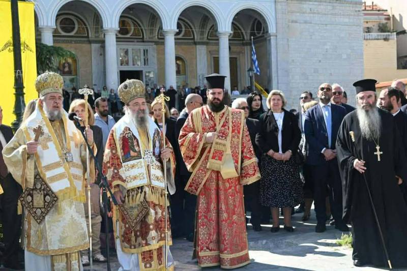 Με ιδιαίτερη λαμπρότητα και έντονο συμβολισμό τελέστηκε η θεία λειτουργία στον Ιερό Ναό Παντανάσσης της Πάτρας, όπου πλήθος πιστών έδωσε το παρών σε μια ημέρα βαθιάς μνήμης και εθνικής συγκίνησης. Στην ακολουθία χοροστάτησαν ο Σεβασμιότατος Μητροπολίτης Πατρών Χρυσόστομος και ο Μητροπολίτης Γόρτυνος και Μεγαλοπόλεως Νικηφόρος, προσδίδοντας ξεχωριστή βαρύτητα στην τελετή.