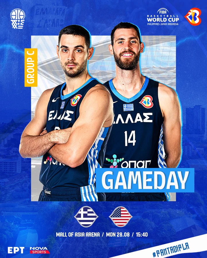 Δεύτερος αγώνας για την «γαλανόλευκη» για τη 2η αγωνιστική του Mundobasket 2023, απέναντι στην πανίσχυρη ομάδα των Ηνωμένων Πολιτειών της Αμερικής.