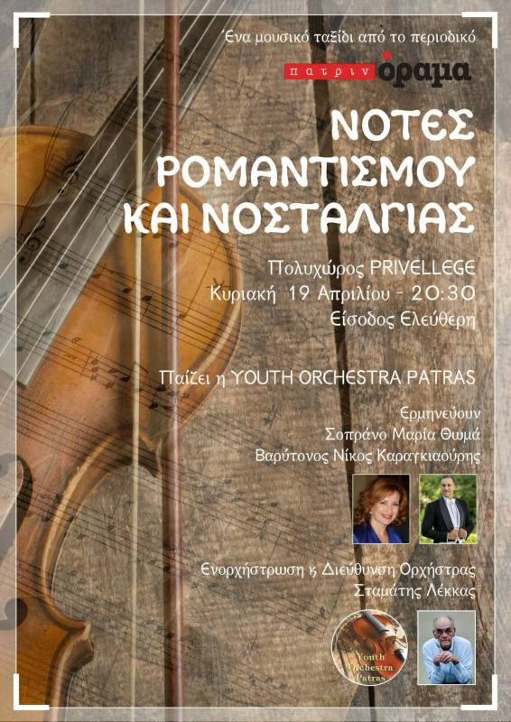Η “Youth Orchestra Patras”, σας προσκαλεί σε ένα μοναδικό μουσικό ταξίδι γεμάτο αγαπημένες μελωδίες, οπερέτες και διαχρονικά ελληνικά τραγούδια.