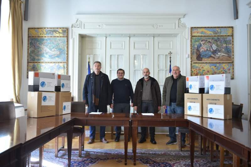 Ο Δήμαρχος Πατρέων, Κώστας Πελετίδης και ο Αντιδήμαρχος Παιδείας και Αθλητισμού, Τάκης Πετροπουλος, παρέλαβαν σήμερα τομεσημέρι στο Δημαρχείο, από τον Αντιπεριφερειάρχη Αχαΐας, Χαράλαμπο Μπονάνο, τέσσερις από τους πέντε απινιδωτές, που διέθεσε η Περιφέρεια Δυτικής Ελλάδας στον Δήμο Πατρέων, για τις δημοτικές αθλητικές εγκαταστάσεις.