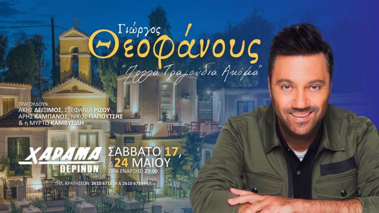 Φέτος το καλοκαίρι η μουσική παράσταση του ΓΙΩΡΓΟΥ ΘΕΟΦΑΝΟΥΣ “Πολλά τραγούδια ακόμα” ταξιδεύοντας σε όλη την Ελλάδα έρχεται στο ΘΕΡΙΝΟ ΧΑΡΑΜΑ!