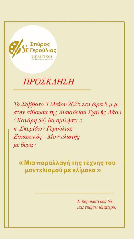 Ομιλία από τον εικαστικό – μοντελιστή Σπύρο Γερούλια στη Διακίδειο Σχολή Λαού