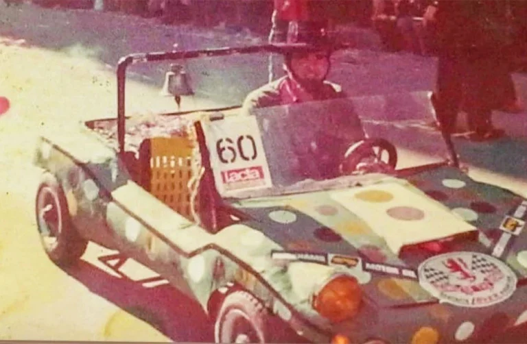 Τότε λοιπόν, οι δύο τους, βρήκαν μία μηχανή Sachs 50cc, πήραν τροχούς από οικοδομικά καροτσάκια, μπετόβεργες και σίδηρο, γωνίες, ρουλεμάν κ.ά. και έφτιαξαν από το μηδέν ένα αυτοκίνητο δύο θέσεων. Το εν λόγω αυτοκίνητο, όχι μόνο βγήκε στο Καρναβάλι, ώς Πλήρωμα… δύο ατόμων αλλά και βραβεύτηκε!.