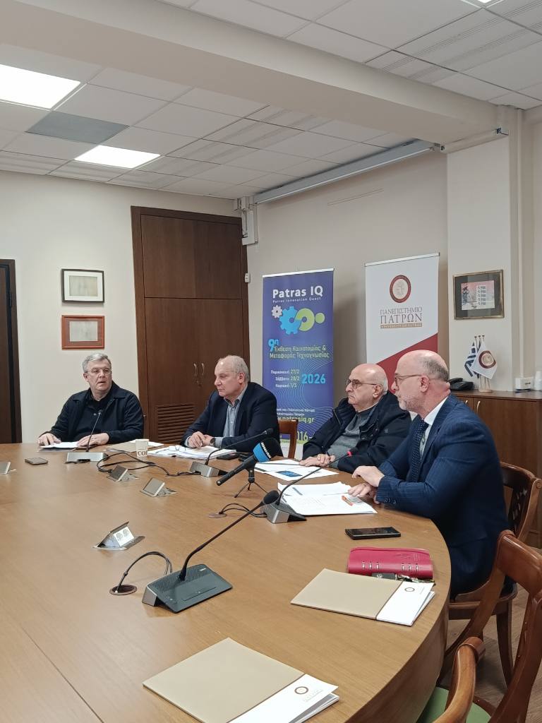 Πραγματοποιήθηκε την Τετάρτη 25 Φεβρουαρίου 2026, στο Πανεπιστήμιο Πατρών, συνέντευξη Τύπου, με αφορμή την έναρξη της 9ης Έκθεσης Καινοτομίας & Μεταφοράς Τεχνογνωσίας – Patras IQ 2026.