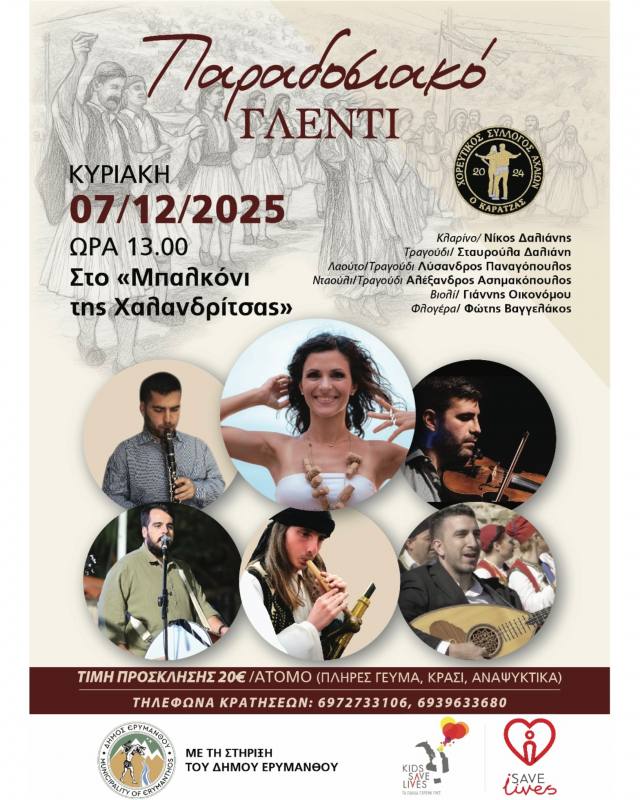 Σας περιμένουμε όλους με μεγάλη μας χαρά να περάσουμε ένα αξέχαστο γλέντι με ξεχωριστούς και αγαπημένους καλλιτέχνες του παραδοσιακού τραγουδιού!