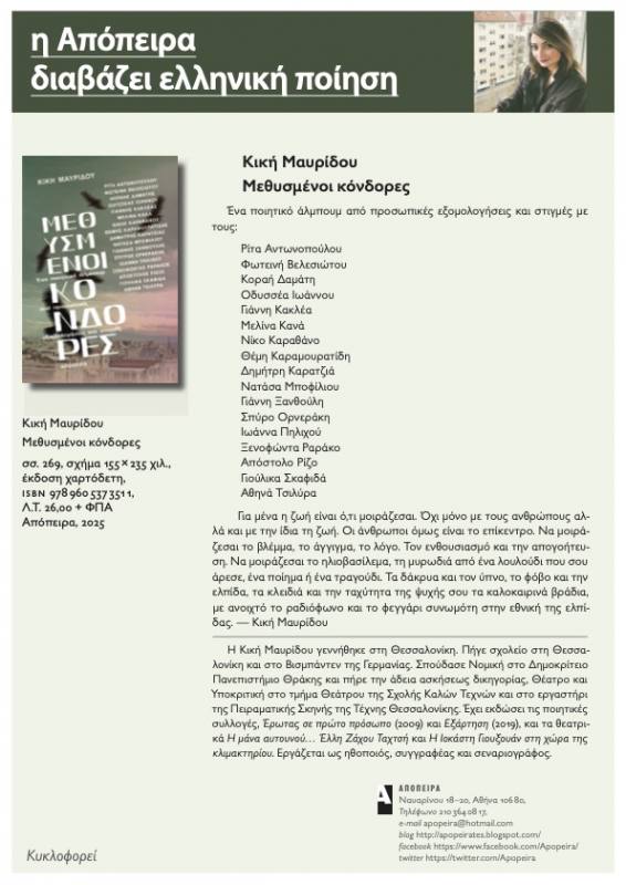 (Το βιβλίο κυκλοφορεί από τις εκδόσεις «ΑΠΟΠΕΙΡΑ»)