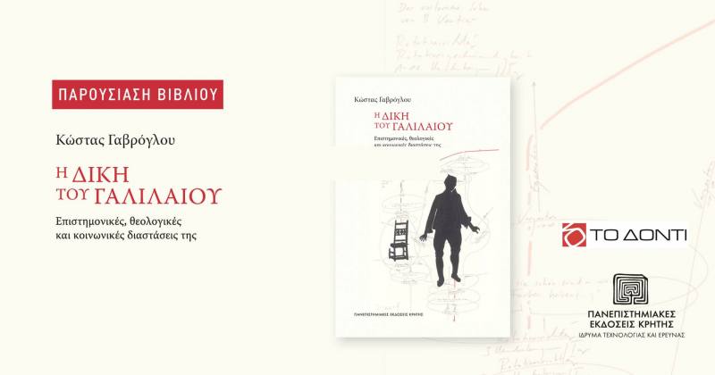 Παρουσίαση του βιβλίου του Κώστα Γαβρόγλου «Η δίκη του Γαλιλαίου – Επιστημονικές, θεολογικές και κοινωνικές διαστάσεις της» διοργανώνουν στην Πάτρα οι Πανεπιστημιακές Εκδόσεις Κρήτης, το Παράρτημα Αχαΐας της Ελληνικής Μαθηματικής Εταιρείας και το βιβλιοπωλείο Το Δόντι.
