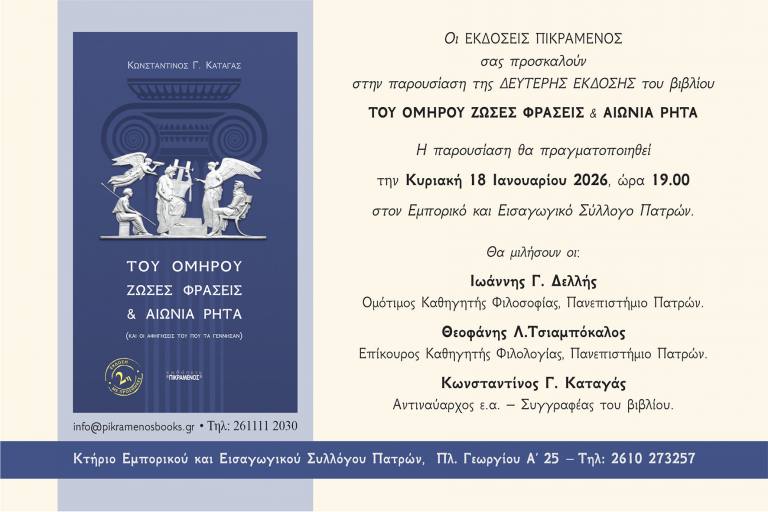 Πληροφορίες στις Εκδόσεις Πικραμένος, Τηλ: 2611112030, email: [email protected]