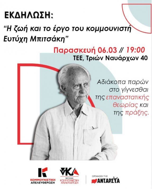 Την Παρασκευή 6 Μαρτίου και ώρα 19:00 στην αίθουσα του ΤΕΕ της Πάτρας, η Κομμουνιστική Απελευθέρωση και η νεολαία Κομμουνιστικη Απελευθέρωση, διοργανώνουν την εκδήλωση μνήμης: