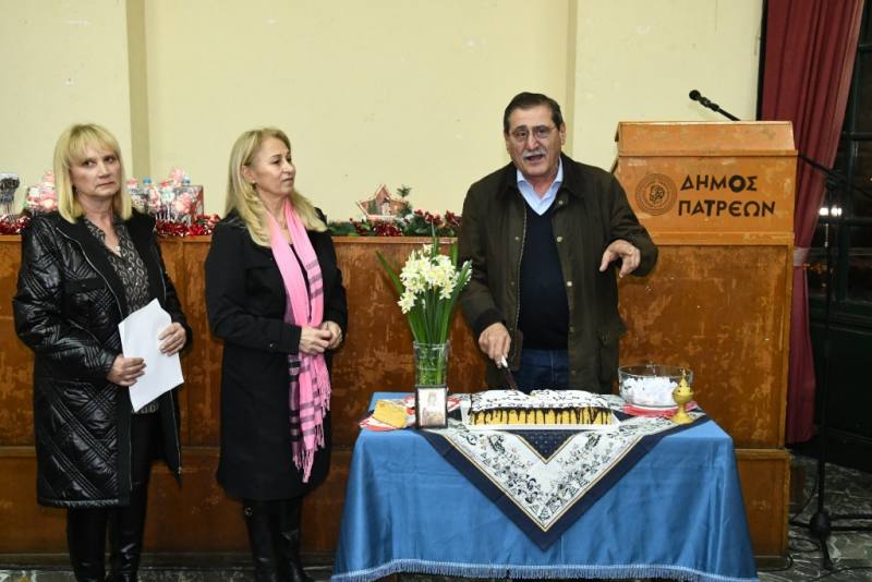 Την Πρωτοχρονιάτικη πίτα του έκοψε χθες το απόγευμα στο Μέγαρο Λόγου και Τέχνης το Σωματείο Φυλάκων Σχολικών Κτιρίων και λοιπών Εργατοϋπαλλήλων του Δήμου Πατρέων, παρουσία του Δημάρχου Πατρέων Κώστα Πελετίδη, των Αντιδημάρχων, Παιδείας, Κατερίνας Σίμου και Αθλητισμού, Τάκη Πετρόπουλου και της Προέδρου της Α/Θμιας Σχολικής Επιτροπής, Ρένας Σκαρλάτου.