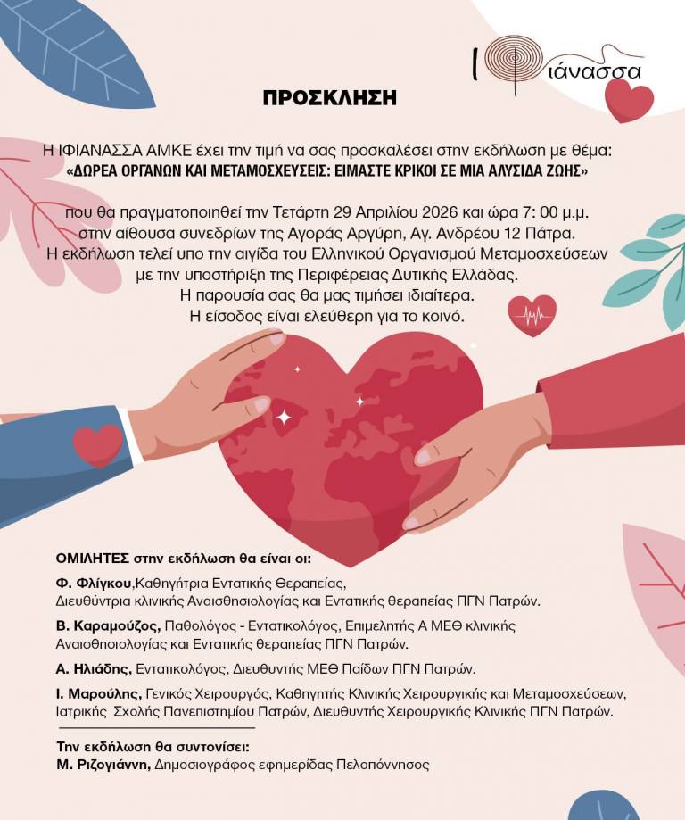 Η εκδήλωση με τίτλο «Είμαστε κρίκοι μιας αλυσίδας ζωής» επιχειρεί να μετατρέψει τη μνήμη του σε δύναμη και την απώλεια σε μήνυμα ελπίδας και ευθύνης. Θέλουμε να αναδείξουμε ότι η δωρεά οργάνων δεν είναι απλώς μια ιατρική πράξη — είναι μια πράξη ζωής, αλληλεγγύης και ανθρωπιάς.