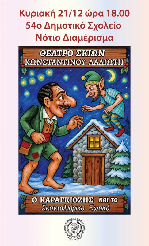 Παράσταση Θεάτρου Σκιών – Ο Καραγκιόζης και το Σκανταλιάρικο Ξωτικό – με τον Καραγκιοζοπαίχτη Κωνσταντίνο Λαλιώτη