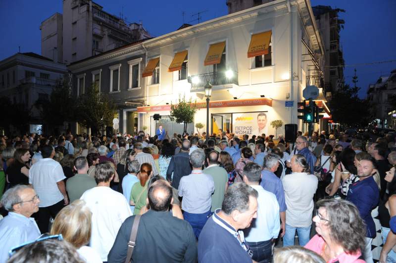 Μέγα πλήθος Πατρινών τίμησαν απόψε τον υποψήφιο Δήμαρχο Πατρέων Πέτρο Ψωμά και τη δημοτική παράταξη σπιράλ στα εγκαίνια του εκλογικού της κέντρου, που πραγματοποιήθηκαν στο νεοκλασικό κτίριο στη συμβολή των οδών Μαιζώνος και Πατρέως.