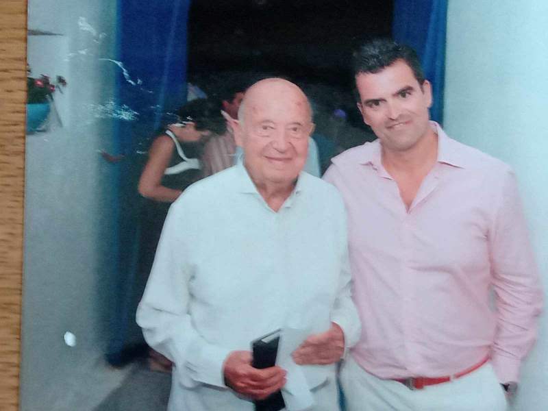 Με τον αξιότιμο καθηγητή του στο τμήμα Χημείας Πανεπιστημίου Πατρών Dr Ιωάννη Ματσούκα και αγαπητό του φίλο και ιδρυτή του Επιστημονικού Ινστιτούτου Πατρών