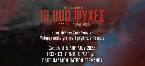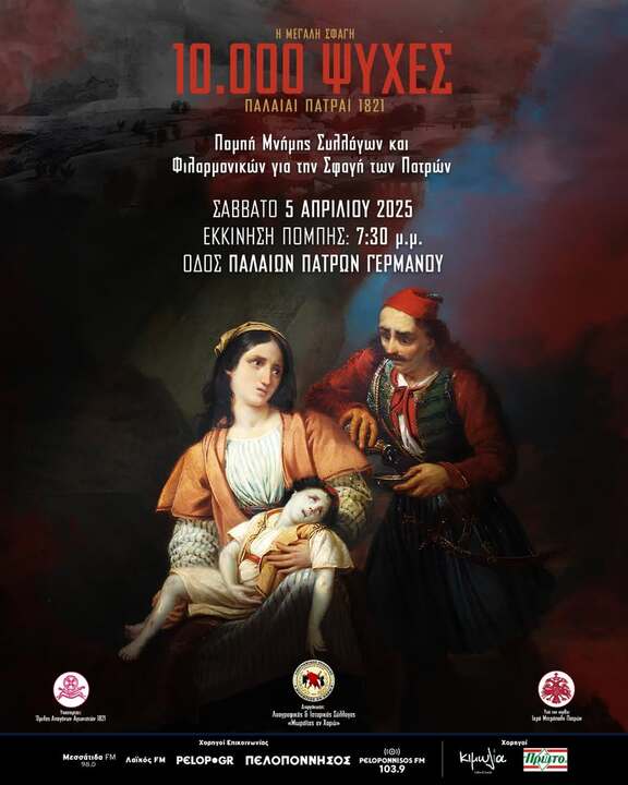 Ο Λαογραφικός & Ιστορικός Σύλλογος «Μωραΐτες εν Χορώ» με αίσθημα ευθύνης απέναντι στην μνήμη των χιλιάδων Πατρινών που σφαγιάσθηκαν τον Απρίλη του 1821, διοργανώνει μνημόσυνη πομπή αναβιωτικών και παραδοσιακών συλλόγων και Φιλαρμονικών από την Πάτρα και την ευρύτερη περιφέρεια.