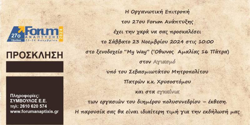 Η ανεξάρτητη δημοτική παράταξη “σπιράλ” σάς προσκαλεί στην εκδήλωση με θέμα: «Νεανική Παραβατικότητα: Ο ρόλος των Δήμων για μια πόλη χωρίς βία», που θα διοργανωθεί στο πλαίσιο του φετινού Forum Aνάπτυξης, την Κυριακή 24 Νοεμβρίου 2024, ώρες 19.00-21.00, στο ξενοδοχείο MYWAY (Όθωνος – Αμαλίας 15 στην Πάτρα).