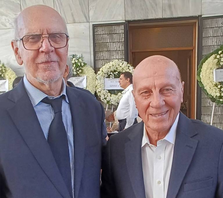 Η επιθυμία μου κάποτε να τον συναντήσω έγινε πραγματικότητα, όχι στις καλύτερες στιγμές και για τους δυο μας. Ήταν στο τελευταίο αντίο για τον Μίμη Πλεσσα. Όταν μου ζητήθηκε απο την οικογένεια Πλεσσα να μιλήσω για τον χημικό Μίμη Πλεσσα, θυμάμαι πως με πολύ μεγάλο ενδιαφέρον άκουγε τα λόγια μου αποχαιρετισμού για τον χημικό και ερευνητή Πλέσσα. Βρεθήκαμε κοντά στο τέλος των ομιλιών και είχαμε μια σύντομη ζεστή κουβέντα. Του εξέφρασα τον θαυμασμό μου για τα επιτεύγματα του και ήθελε να μάθει περισσότερα για την έρευνα μας. Μου είπε ότι ο ίδιος συνεχίζει να προσφέρει αφιλοκερδώς τις υπηρεσίες στα νέα παιδιά των Ακαδημιών του Παναθηναϊκού. Βγάλαμε μαζί μια φωτογραφία που του ζήτησα και ευχαρίστως αποδέχθηκε. Μείναμε για να συναντηθούμε πάλι στην Αθήνα ή Πάτρα και να τα πούμε εκτενέστερα. Το ήθελα πολύ! Δεν προλάβαμε.
