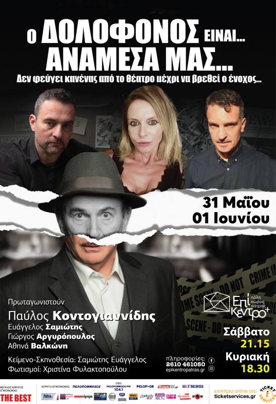 Μετά από 50 παραστάσεις στο θέατρο Μικρός Κεραμικός η κωμωδία της χρονιάς με τον Παύλο Κοντογιάννίδη  έρχεται στην Πάτρα στο θέατρο Επίκεντρο+ αποκλειστικά στις 31 Μαΐου και την 1η Ιουνίου με το έργο του Ευάγγελου Σαμιώτη «Ο ΔΟΛΟΦΟΝΟΣ ΕΙΝΑΙ… ΑΝΑΜΕΣΑ ΜΑΣ…»