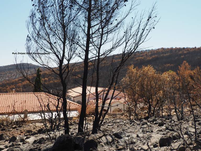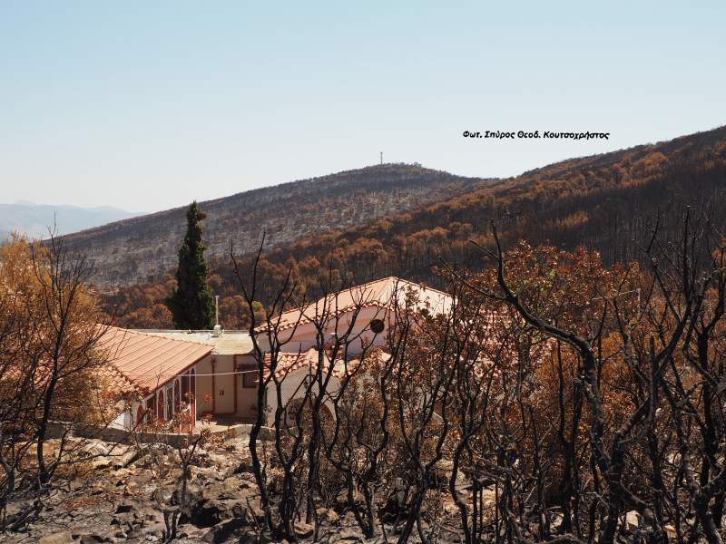 Η Ιερά Μονή Παναγίας Ευαγγελιστρίας και Οσίου Δαυίδ στην Μάνδρας Αττικής, σώθηκε από το πέρασμα της δασικής πυρκαγιάς των Δερβενοχωρίων .
