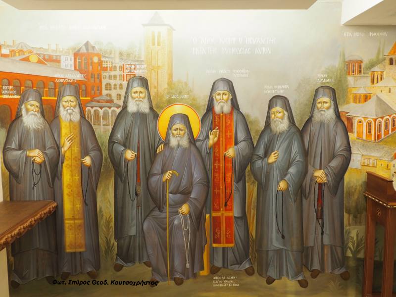 Δεξιά και αριστερά, από τα σκαλοπάτια της κυρίας εισόδου του Ιερού Ναού, βρίσκονται τα Ιερά Παρεκκλήσια των Αγίων Αγιορειτών Πατέρων και των Οσίων Πορφυρίου & Παϊσίου, αντίστοιχα και οι πιστοί έχουν την ευκαιρία να γνωρίσουν, μέσα από τις αγιογραφίες τους, στιγμές, από την ζωή Αγίων, που έζησαν στις ημέρες μας!