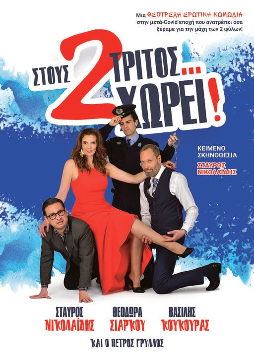 Η Περιφέρεια Δυτικής Ελλάδας διοργανώνει τέσσερις θεατρικές παραστάσεις με τίτλο: «Στους δύο τρίτος …χωρεί!», με τη θεατρική σκηνή του Σταύρου Νικολαΐδη. Πρόκειται για μια κωμωδία χαρακτήρων που συνδέεται με την αιώνια διαμάχη των δύο φύλων, η οποία διαφοροποιείται στην μετά-covid εποχή. Ένα ξεκαρδιστικό παιχνίδι γάτας και ποντικού, όπου οι συνεχείς εκπλήξεις και ανατροπές κάνουν τον θεατή να ξεχνά ποια είναι η γάτα και ποιος ο ποντικός.
