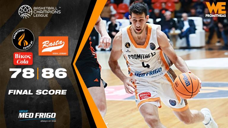 Σε ένα παιχνίδι που παρουσιάστηκε λαβωμένος, με πάρα πολλά προβλήματα στη front line του, ο Προμηθέας Βίκος Cola ηττήθηκε από την Ράστα Βέχτα (78-86) και πλέον δεν ορίζει ο ίδιος την ευρωπαϊκή του μοίρα, αφού θα χρειαστεί την τελευταία αγωνιστική νίκη στην Τσεχία επί της Νίμπουργκ και παράλληλα ήττα των Γερμανών από τη Γαλατασαράι, ώστε να προκριθεί στα Play In. Η ομάδα του Ηλία Παπαθεοδώρου πλήρωσε τον εξωπραγματικό αριθμό των χαμένων ριμπάουντ (23-57) και τις αμέτρητες δεύτερες επιθέσεις που έδωσε στους Γερμανούς (7-31), νούμερα που καθιστούσαν απαγορευτική τη διεκδίκηση της νίκης σε εντός έδρας παιχνίδι. Κορυφαίοι για τους νικητές ήταν ο Ράντολφ και ο Γκάρντνερ, ενώ καταλυτική παρουσία είχε ο Γκρούνλοχ. Aπό τον Προμηθέα προσπάθησαν Ουόκερ, Καραγιαννίδης και Λούντζης, δεν ήταν όμως αρκετοί για να αποτρέψουν την ήττα. Πλέον το ενδιαφέρον στρέφεται στον αγώνα της Δευτέρας στην Πυλαία με τον ΠΑΟΚ για την ομάδα μας.