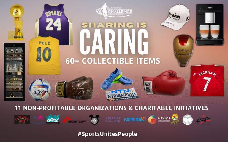 Στις online δημοπρασίες του “Sharing is Caring” υπήρξαν αντικείμενα με τις υπογραφές παγκοσμίων αστέρων του αθλητισμού όπως: