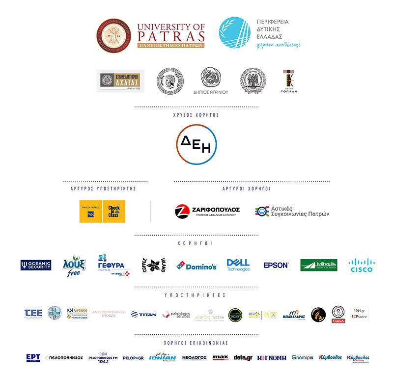 Το « Welcome to up 2023», διοργανώνεται με πρωτοβουλία του πανεπιστημίου Πατρών, με συνδιοργανωτές την Περιφέρεια Δυτικής Ελλάδας και το Επιμελητήριο Αχαΐας καθώς και με τη συνεργασία των Δήμων Πατρέων, Αγρινίου και Μεσολογγίου και την πολύτιμη συνεισφορά των χορηγών του.
