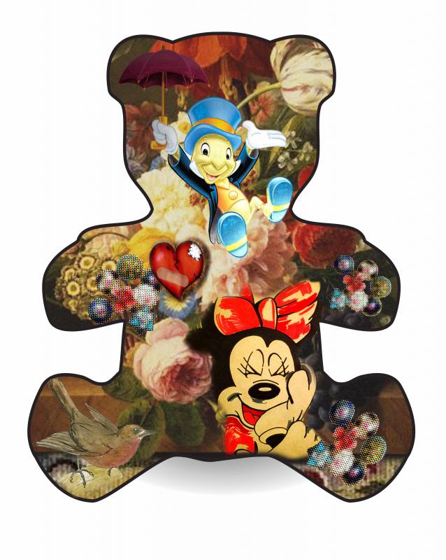 In the work of Mykonian painter and author Marina Petri, the familiar Teddy Bear transforms into the Trendy Bear—a reflection of innocence, of anger at life’s wounds, and of the urban neo–Middle Ages that shape our modern world.