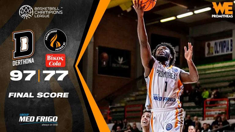 Συνεχίζοντας το μοτίβο των κακών εμφανίσεων του τελευταίου διαστήματος, ο Προμηθέας Βίκος Cola εμφανίστηκε κακός στην Ιταλία, δεν μπήκε ποτέ στην εξίσωση του αγώνα με την Ντερτόνα και γνώρισε μια βαριά ήττα (97-77), που αποτελεί… μαχαιριά, στις ελπίδες των ”πορτοκαλί” για πρόκριση στα νοκ άουτ του Basketball Champions League. Η ομάδα του Ηλία Παπαθεοδώρου δέχτηκε 13 τρίποντα, έχασε για ένα ακόμα ματς τη μάχη των ριμπάουντ (38-31) και είχε ελάχιστους διακριθέντες, σε μια βραδιά που άπαντες θα θέλουν να ξεχάσουν άμεσα, ώστε ο Προμηθέας να ανασυνταχθεί και να κοιτάξει τη συνέχεια. Τα 4 γρήγορα φάουλ του Ουόκερ αποτέλεσαν τροχοπέδη, με τον Αμερικάνο να είναι πρώτος σκόρερ μεν, αλλά πολύ άστοχος και εκτός κλίματος δε, προσπάθησαν Ρις και Σίτου, αλλά οι Ιταλοί με κορυφαίους τους Βιτάλ και Κιουζ έφτασαν στο πρώτο τους ροζ φύλλο στον όμιλο. Πλέον το βάρος για τους ”Αχαιούς” πέφτει στο κομβικό ματς του Σαββάτου με τον ΠΑΟΚ.