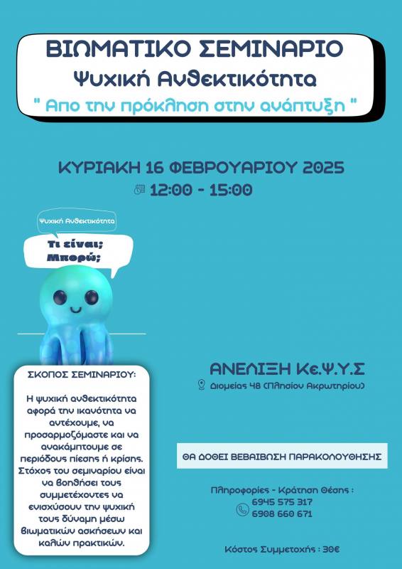 Βιωματικό Σεμινάριο για την Ψυχική Ανθεκτικότητα