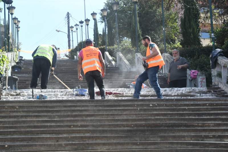 Ξεκίνησαν σήμερα το πρωί, όπως ακριβώς είχε προγραμματιστεί, οι εργασίες ανακατασκευής των κλιμάκων της οδού Αγίου Νικολάου,