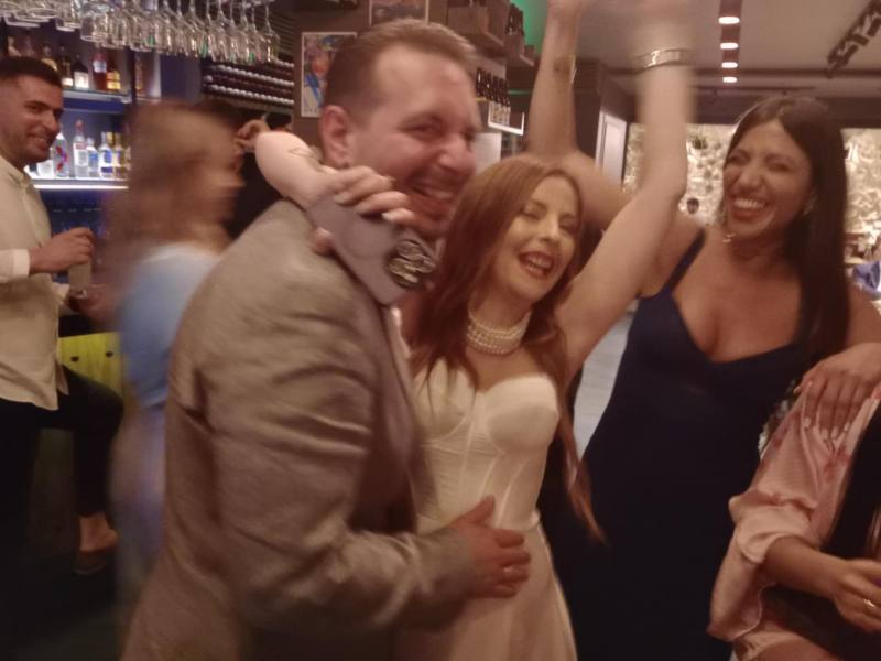 Μετά την τελετή η βραδιά συνεχίστηκε στην «Enteka Pub» όπου η νύφη «Ηρώ Σουγλέρη» και η πεθερά Μαρία Καραμολέγκου- Κολλιοπούλου επιδόθηκαν σε ξέφρενο γλέντι έως τις πρώτες πρωινές ώρες ξεσηκώνοντας τους καλεσμένους τους με το κέφι τους, καθώς γιόρτασαν την ημέρα της μητέρας μαζί με τα γενέθλια του Φίλιππου Ανδρέα κάνοντάς του έκπληξη την τούρτα γενεθλίων.