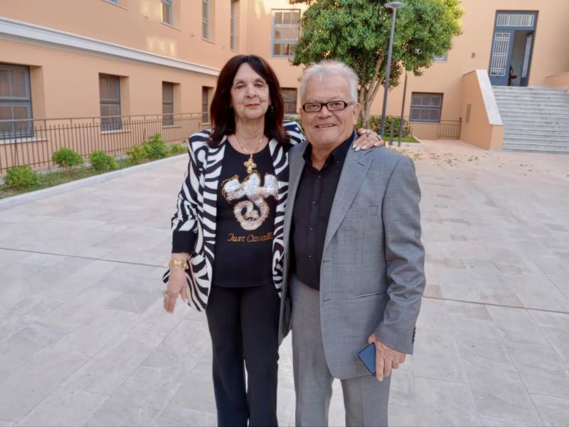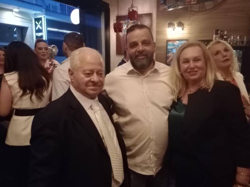 Περιχαρείς οι νονοί του γαμπρού ο καταξιωμένος στην Πατραϊκή κοινωνία και όχι μόνο επιχειρηματίας Φίλιππος Μουστής με την αξιαγάπητη σύζυγό του Άντα Μουστή.