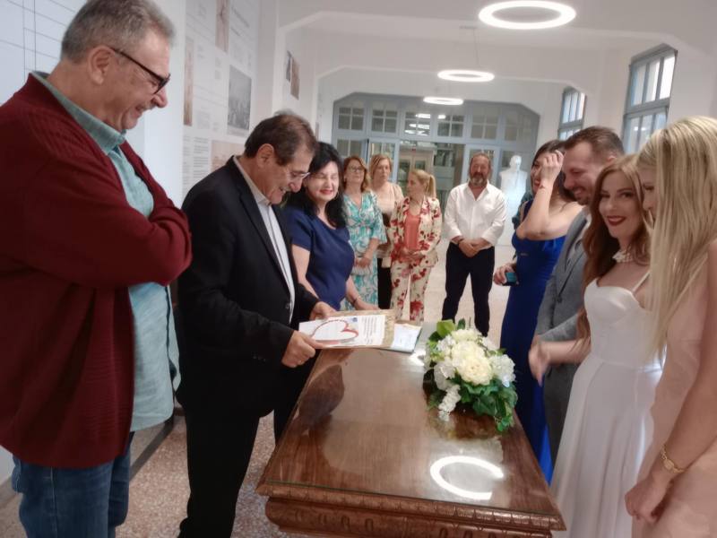 Με όρκους αιώνιας πίστης και αφοσίωσης έδεσε με τα δεσμά υποσχέσεων τον καταξιωμένο μαιευτήρα γυναικολόγο Ανδρέα – Φίλιππο Κολλιόπουλο και την καινοτόμα γυμνάστρια Ηρώ Σουγλέρη ο Δήμαρχος Πατρέων Κώστας Πελετίδης και ο Αντιδήμαρχος Αθλητισμού, Περιβάλλοντος, Ενέργειας και Πρασίνου, Κώστας Πετρόπουλος, το απόγευμα του Σαββάτου, σε κλειστό οικογενειακό κύκλο μεταξύ ελάχιστων φίλων και συγγενών.